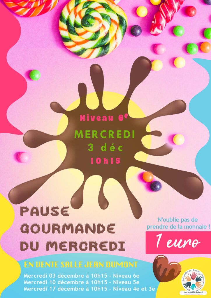 Après le succès des ventes de collations l’année passée, l’association renouvelle son initiative avec des ventes de douceurs sucrées ! Rendez-vous dans la salle JEAN DUMONT. Les profits réalisés lors de ces ventes serviront à financer les actions organisées par l’association tout au long de l’année scolaire. Nos bénévoles se mobiliseront et proposeront une vente de la manière suivante :